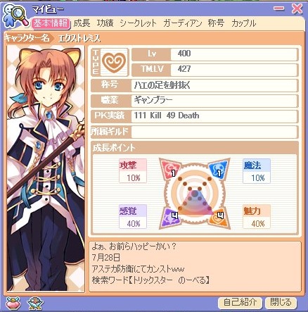 本当につい最近このゲーム始めたみたいで、いろいろと初々しかったw